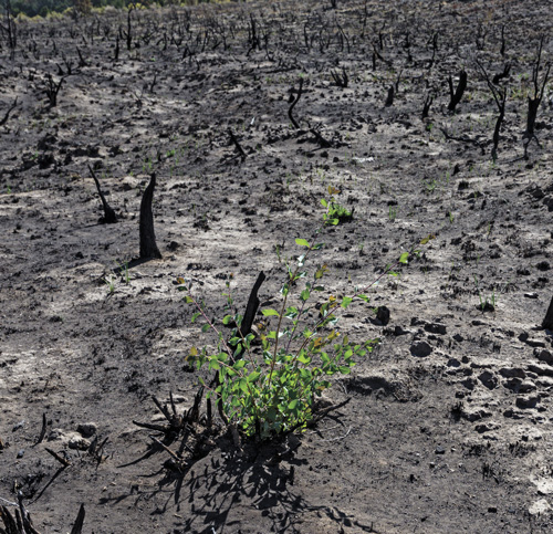 Even though it seemed that the fire was a termination - the end - life found a way to exist. On this hillside, leaves are growing. Nature has seen fires before. A hillside a few miles away has seen a fire some thirty years ago. Growth is there, but the trees take much longer to mature. A forest of Juniper and Piñon trees is not a forest until a hundred years or longer. Invasive species are much faster–cheatgrass flourishes as regrowth begins. Cheatgrass doesn’t hold much moisture, so it stands ready to fuel the next spark, into another rage of destruction.